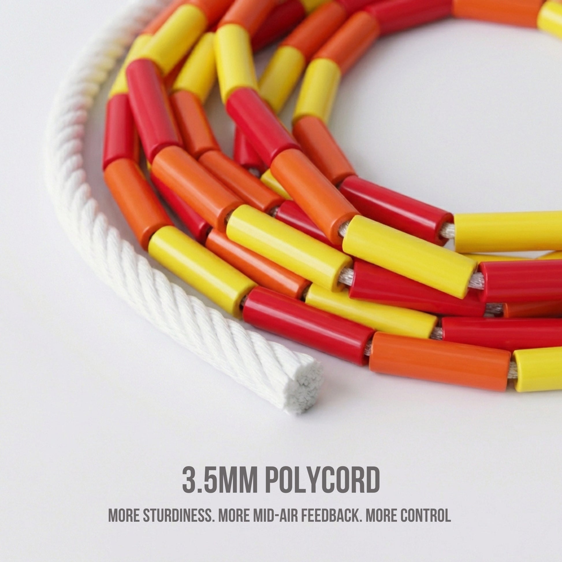 Nicht nur fürs Aussehen: Das Inferno ist mit einem robusten Nylonseil und splitterfesten Perlen konstruiert. Ob du drinnen oder draußen trainierst, dieses Seil behält seine Form und sorgt für einen gleichmäßigen Schwung – perfekt für Springer aller Leistungsstufen. Die griffigen Griffe bieten maximale Kontrolle und reduzieren das Abrutschen bei intensiven Workouts.
