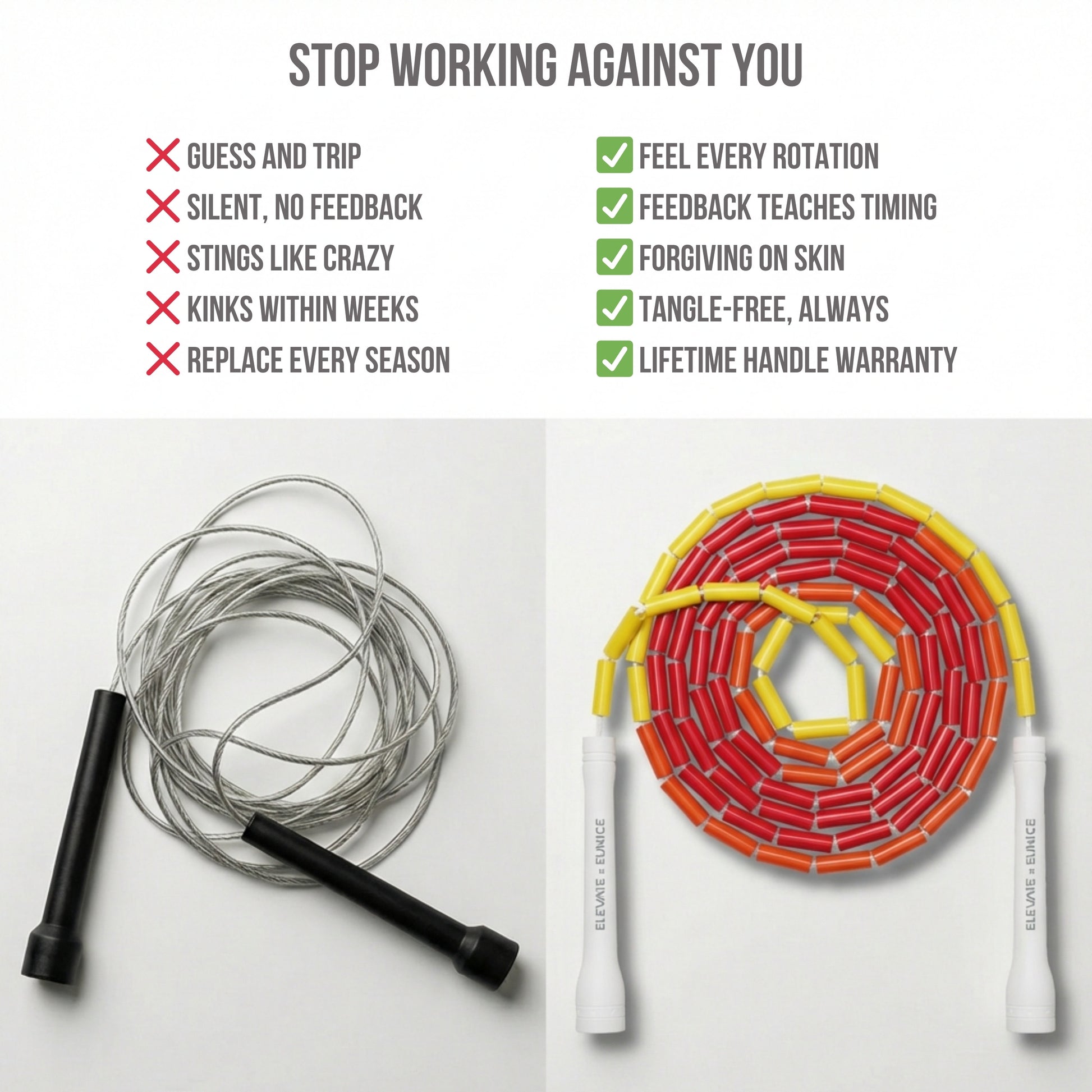 Entfache deine Fitnessreise mit dem Inferno Perlen-Seilspringseil für Anfänger – entwickelt für Leistung, gebaut für Langlebigkeit und gemacht, um dich in Bewegung zu halten. Egal, ob du neu im Seilspringen bist oder deinen Flow verfeinern möchtest, das Inferno ist dein Werkzeug, um Technik zu meistern und Ergebnisse zu erzielen.