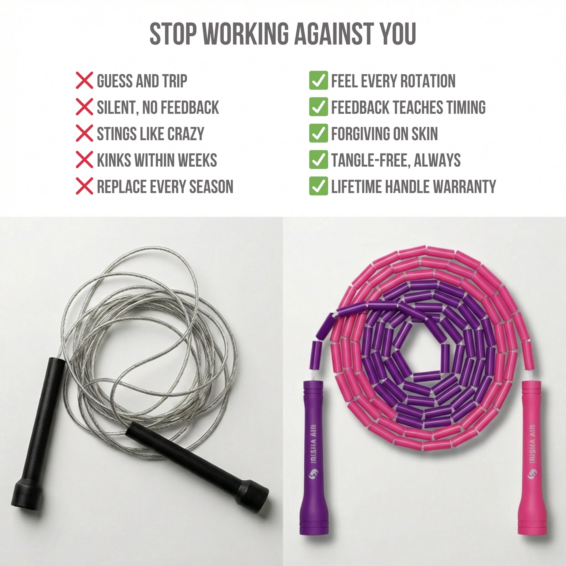 Comprendiamo che imparare nuovi trucchi può essere un compito complicato e travolgente quando inizi a esplorare il mondo del salto con la corda.